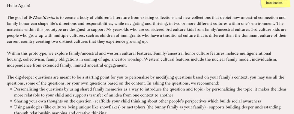 &Then Stories will support increased culturally responsive socio-emotional competencies and feelings of belonging for learners from multigenerational households and family honor contexts. The children’s literature content will be trifold and scaled to include: